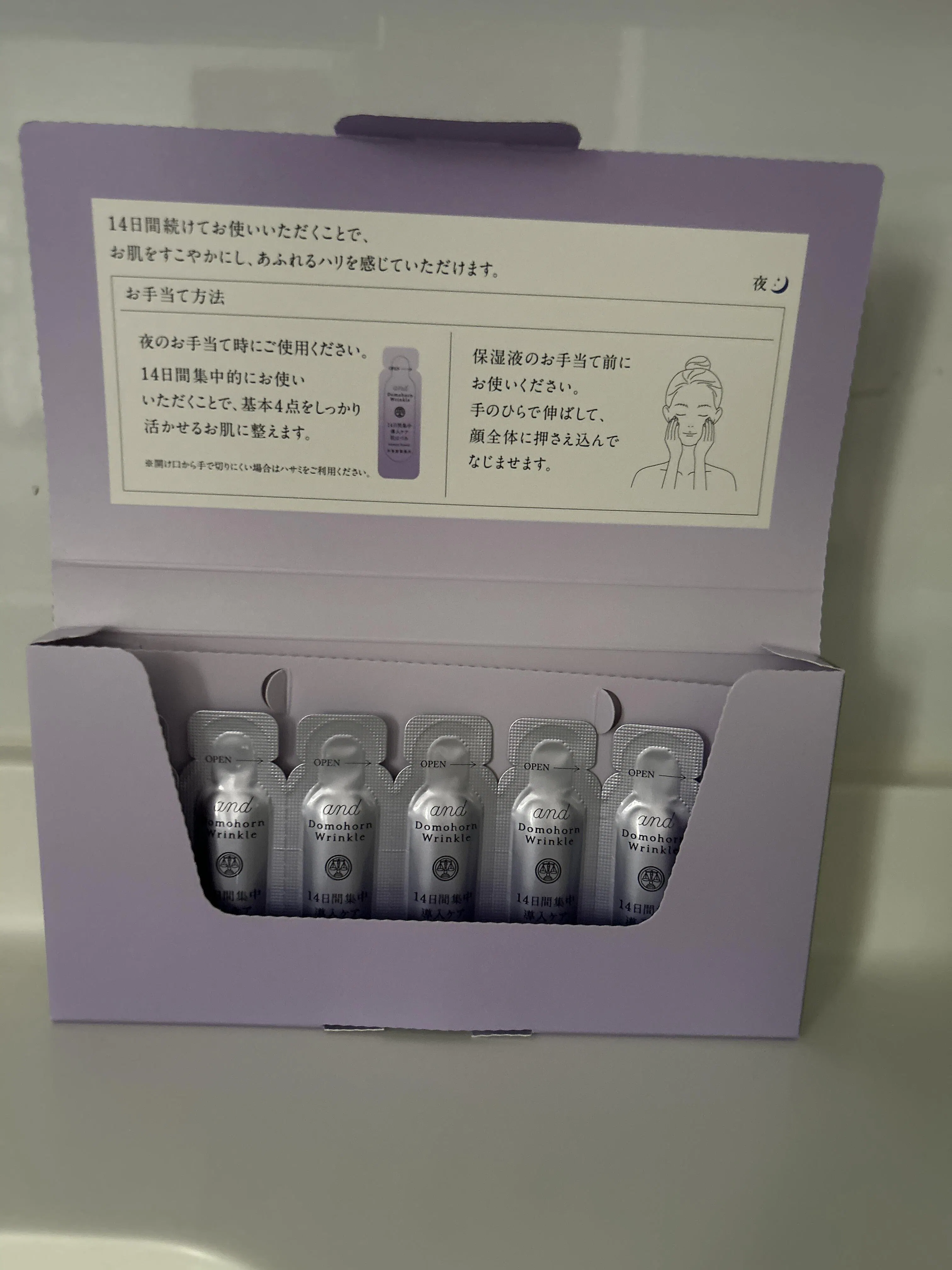 Tear open a sachet, pour the serum into the palm of your hand, and gently press it onto your entire face until absorbed.
