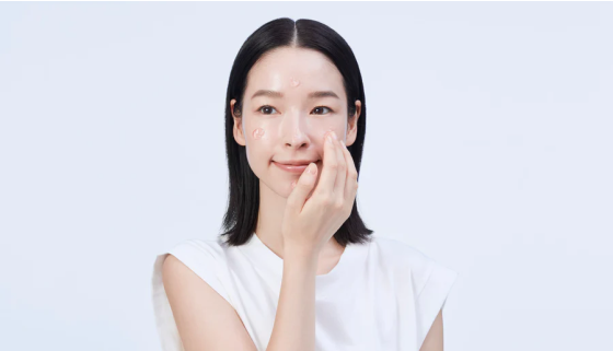 Apply 1 dot each on your forehead, nose, cheeks, and chin.